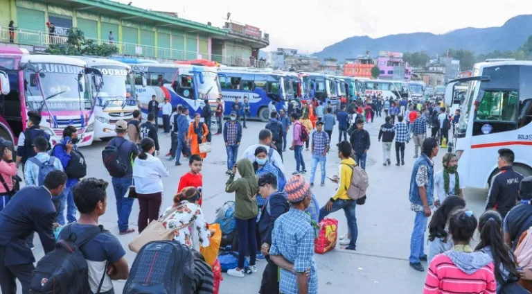 नयाँ बसपार्क, गौशाला, कोटेश्वरलगायतका स्थानमा टिकट काटेर घर फर्किने यात्रुको लर्को देख्न सकिन्छ ।