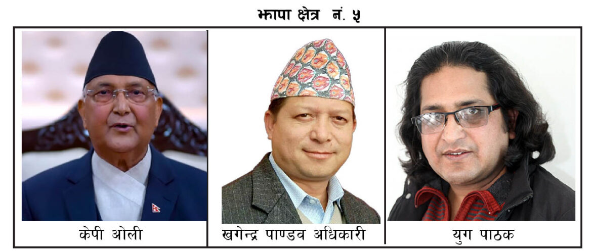 मंसिर ४ मा हुने निर्वाचनमा यस पटक पनि एमाले अध्यक्ष ओली र कांग्रेस नेता अधिकारीबीच प्रतिष्पर्धा हुने भएको छ। स्वतन्त्रसहित २५ जनाको उम्मेद्वारी रहेपनि मुख्य प्रतिष्पर्धा सत्तारुढ गठबन्धन र एमालेबीच नै हुने निश्चित छ। यता लेखक तथा सामाजिक अभियन्ता युग पाठक (दिपककुमार पाठक) को पनि झापा निर्वाचन क्षेत्र नं ५ मा प्रतिनिधिसभा सदस्य पदका लागि स्वतन्त्र उम्मेदवारी परेको छ।