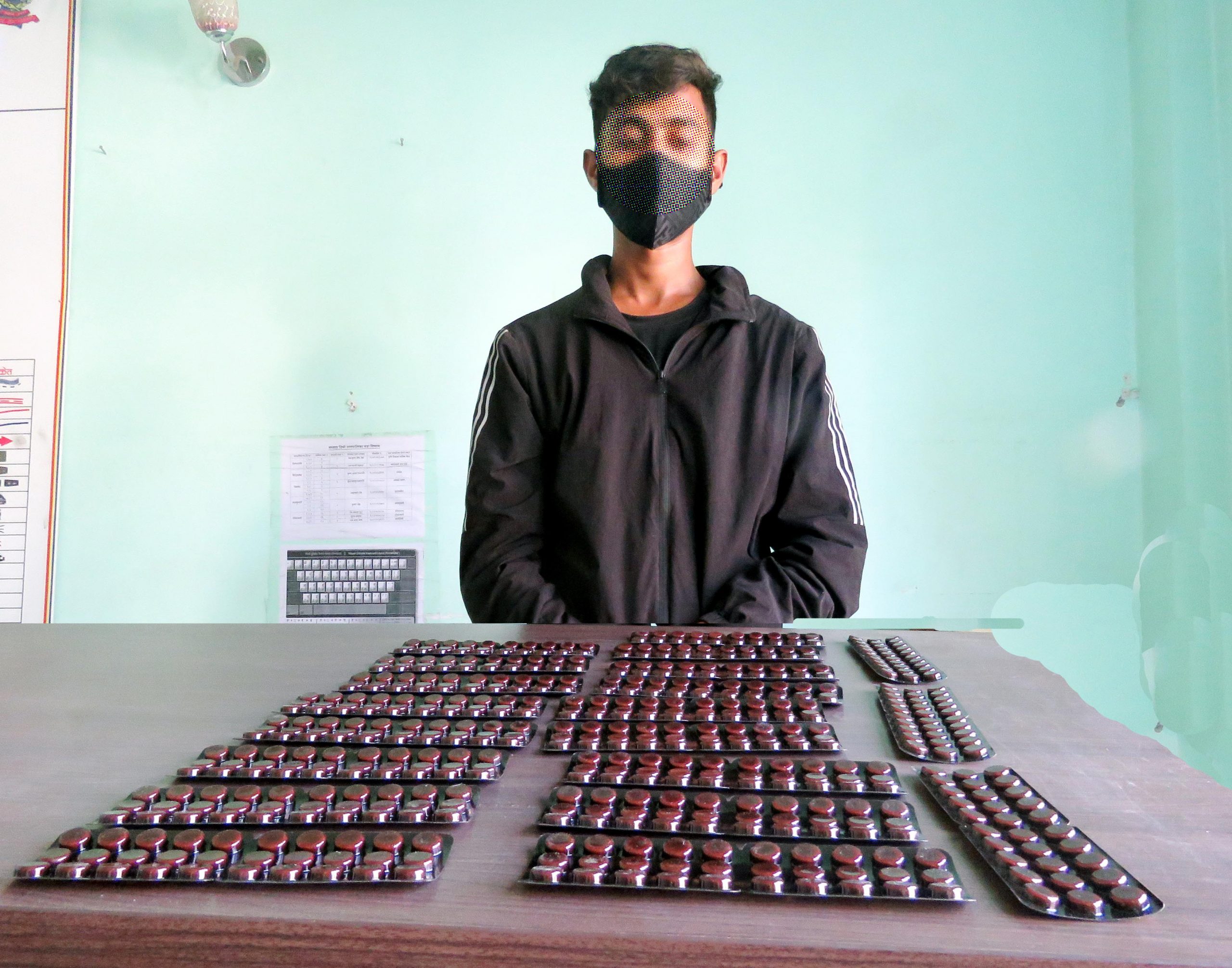 उनलाई नाइट्राभेट ६०० सय थान ट्यावलेट लागू षधसहित नियन्त्रणमा लिएको उनकाे भनाइ छ । उनलाई प्रहरी वृत्त ठिमी भक्तपुरमा राखी थप अनुसन्धान कार्य भइरहेको जनाइएको छ। लागूऔषध विक्रीवितरण तथा ओसारपसार हुँदै छ भन्ने विशेष सूचनाको आधारमा प्रहरीले उनलाई पक्राउ गरेको जनाएको छ ।