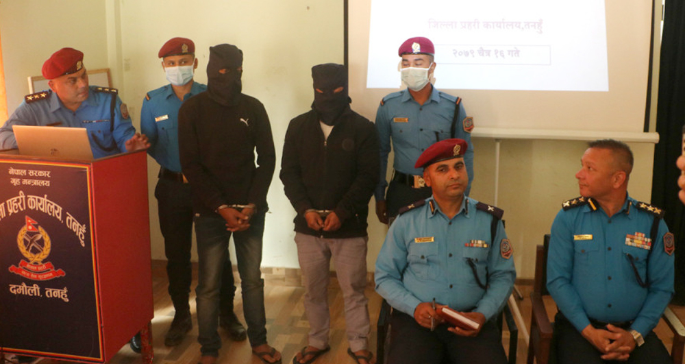 जिल्लाको म्याग्दे गाउँपालिका–४ मनहरीस्थित पपिलटार खानेपानीको ट्यांकीमा गत आइतबार एक महिलाको शव भेटियो । २/३ दिनदेखि पानीमा गन्ध आयो भन्दै उपभोक्ताले गुनासो गरेपछि समितिले ट्यांकीको ढक्कन खोलेर हेर्दा पानीमा शव तैरिरहेको अवस्थामा थियो । सोही हत्या आरोपमा दुई जनालाई पक्राउ गरी जिल्ला प्रहरी कार्यालय तनहुँले बिहीबार घटनाबारे सार्वजनिक गरेको हो ।
