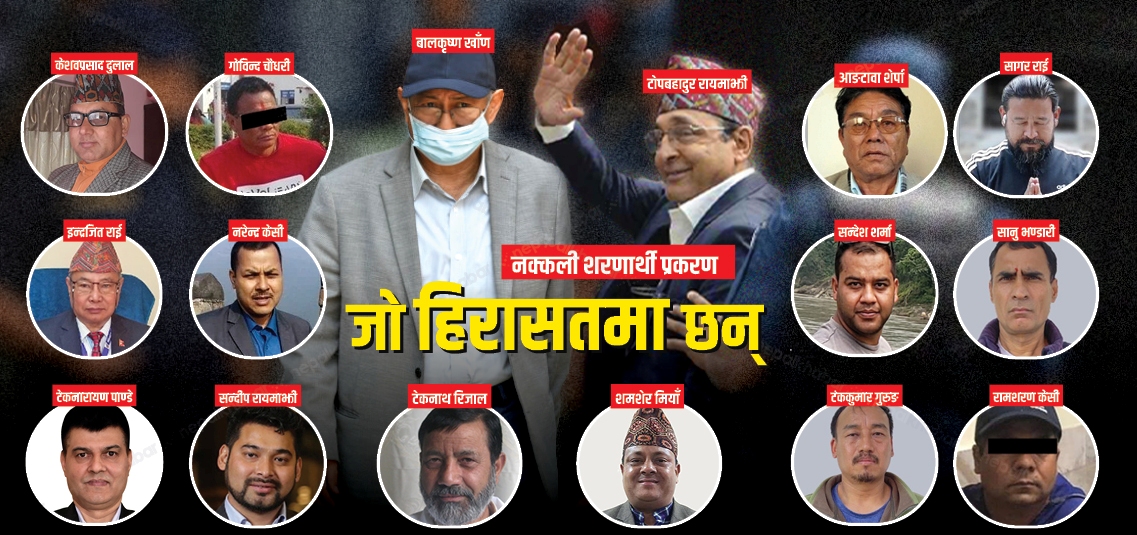 यो प्रकरणमा पक्राउ पर्नेमा नेकपा एमालेका नेता एवम् पूर्वउपप्रधानमन्त्री टोपबहादुर रायमाझी, नेपाली कांग्रेसका नेता एवम् पूर्वगृहमन्त्री बालकृष्ण खाँण, तत्कालीन गृहसचिव टेकनारायण पाण्डे, भुटानी शरणार्थी नेता टेकनाथ रिजाल, तत्कालीन गृहमन्त्री रामबहादुर थापा बादलका सुरक्षा सल्लाहकार इन्द्रजित राई, हज समितिका अध्यक्ष शमशेर मियाँ, पूर्वसभासद् आङटावा शेर्पा, तत्कालीन गृहमन्त्री खाँणका स्वकीय सचिव नरेन्द्र केसी, टोपबहादुर रायमाझीका छोरा सन्दीप रायमाझी रहेका छन्।