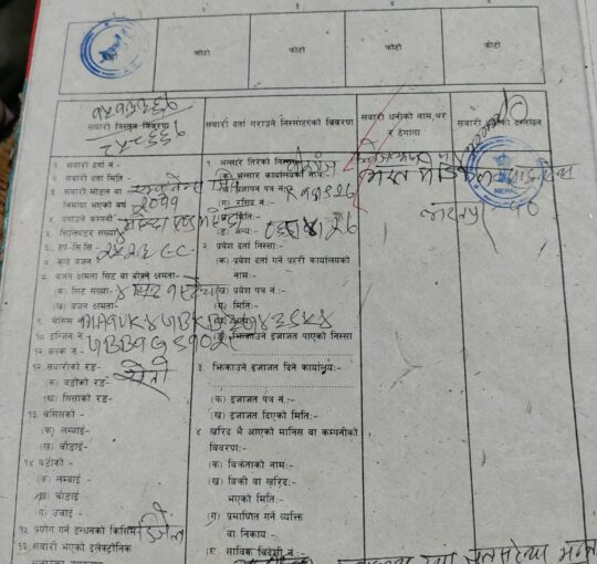ना २ च ५६१९ नम्बरको एम्बुलेन्सको दर्ता फाइलमा रहेका कागजातहरु, पूरानो कागजातहरु नभेटिएको जानकारी