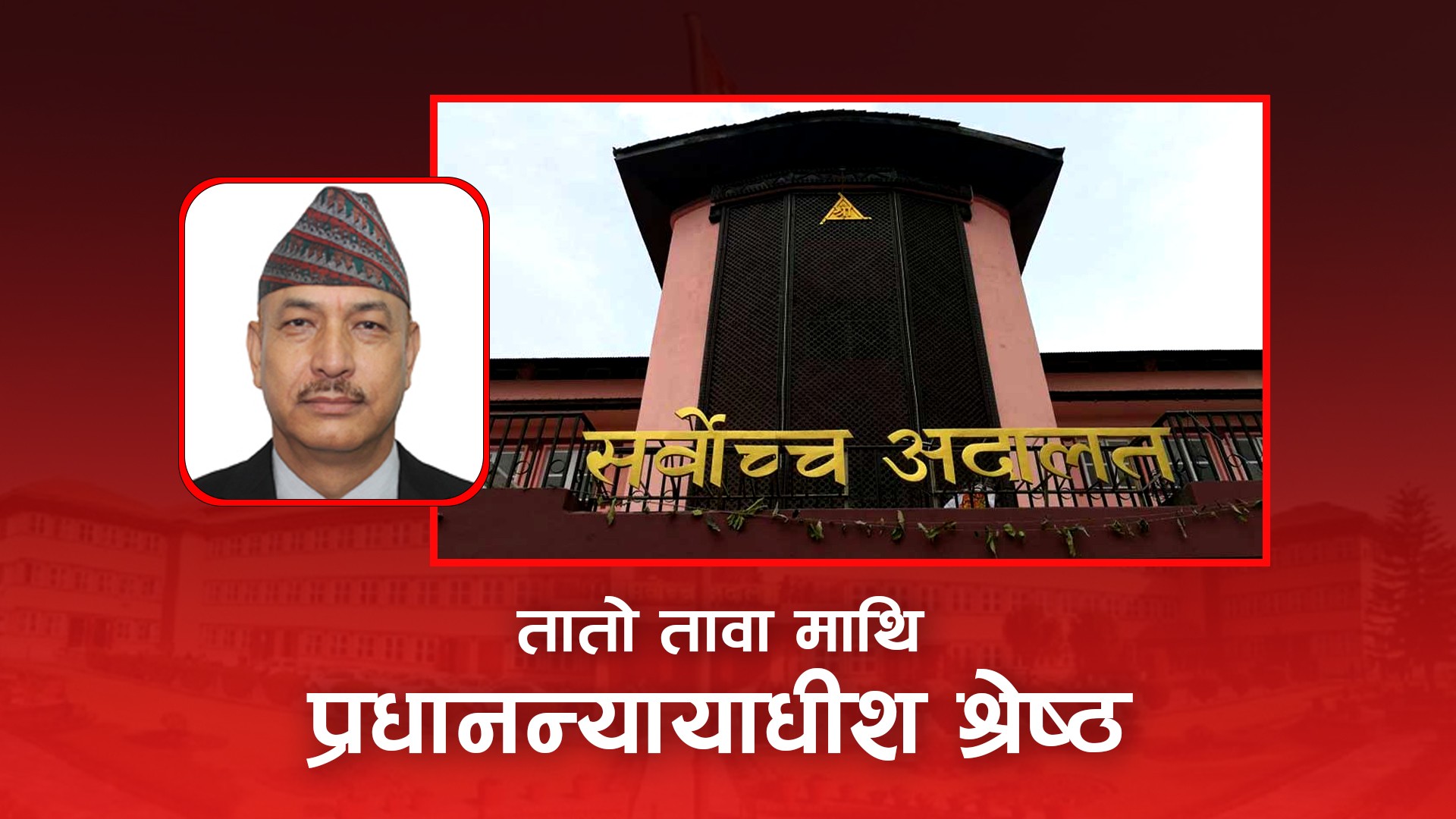 न्यायपालिका सुधारका महत्वकाक्षी योजना प्रस्तुत गर्दै सर्वोच्च न्यायायलयको ३१ औं प्रधानन्यायाधीशका रुपमा विश्वम्भर श्रेष्ठ अनुमोदित भएका छन् ।