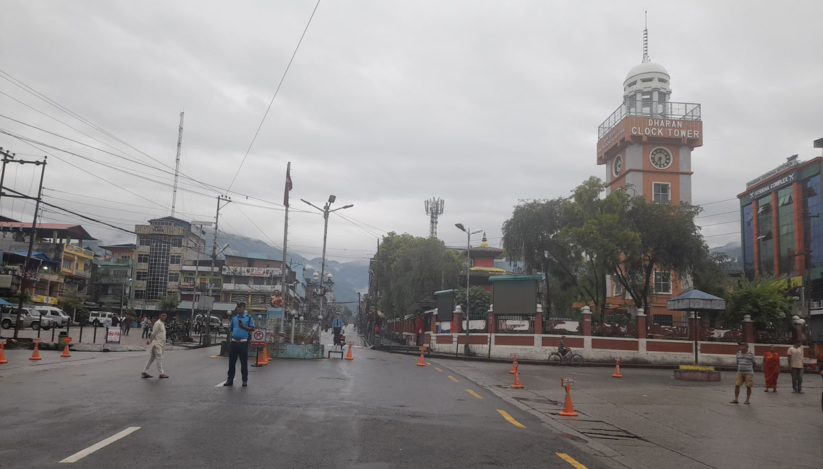 धरान : प्रहरीको व्यापक घेराबन्दीका कारण सुनसरीको धरान उपमहानगरपालिका शान्त बनेको छ। जिल्ला प्रशासन कार्यालय सुनसरीले हिजो राती १२ बजेदेखि आज राती १२ बजेसम्म निशेषाज्ञा जारी गरेपछि धरानलाई प्रहरीले चौतर्फी घेराबन्दी गरेर शान्तिसुरक्षा प्रदान गरेको छ।