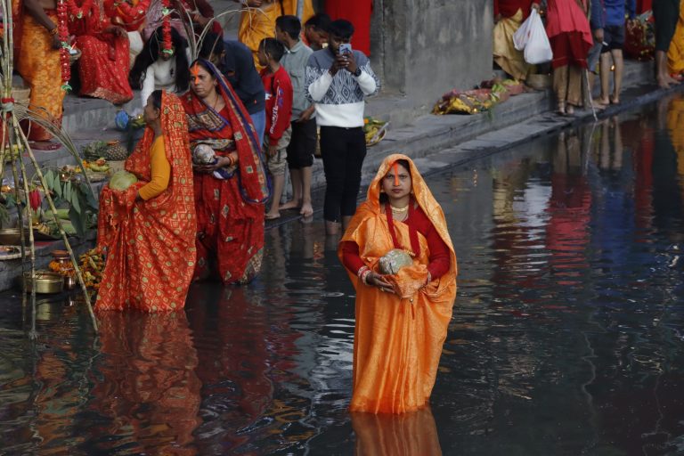 काठमाडौँ । काठमाडौँस्थित गौरीघाटका छठ घाटमा भक्तजनहरूले अस्ताउदो सूर्यलाई अर्ध दिई छठ पर्व मनाएका छन् ।