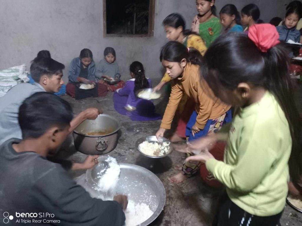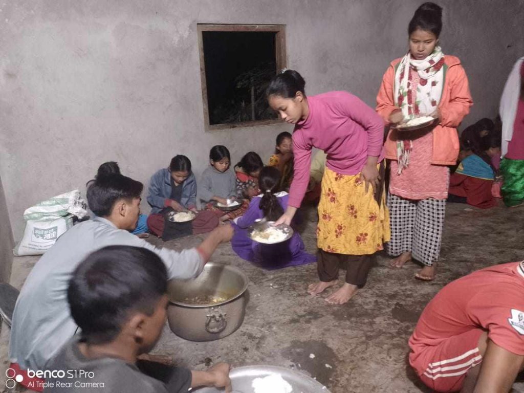 ” बाबुनानीहरुको पेट भराउनको लागि धौ धौ भएको छ , हामी संग अहिले मासिक बार्षिक सहयोग गर्नु हुने सहयोगी दाता नहुदा धेरै समस्या मा परेको छौ।” उहाँ बताउनु हुन्छ । सो छात्रावासमा कक्षा १ देखि १० कक्षा सम्म पढने ६५ जना बालबालिकाहरु आफैले खाना बनाएर खाने गरेका छ्न ।
