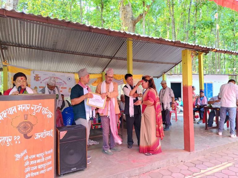 चितवन, जेठ ५ – भरतपुर महानगरपालिका वडा नम्वर ११ मा रहेको जखडीमाइ मन्दिरको दर्ता पछिको प्रथम साधारणसभा एवम् अधिवेशन आज शनिबार सम्पन्न भएको छ। अधिवेशनले चन्द्र बहादुर श्रेष्ठको अध्यक्षतामा १३ सदस्यीय नयाँ कार्यसमिति चयन गरेको छ । नवगठित समितिको उपाध्यक्षमा मिना दाहाल खड्का र धनकुमारी सापकोटा सचिबमा राजेन्द्र वाग्ले कोषाध्यक्षमा होमबहादुर मगर सहसचिवमा शारदा खड्का र अन्य सदस्यहरु रहनु भएको छ ।