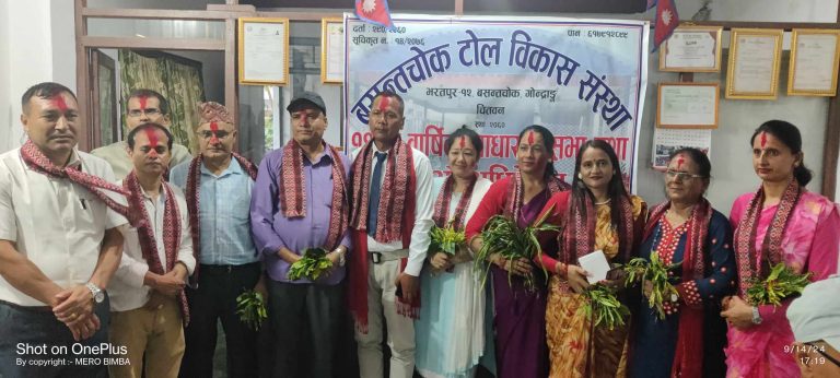 भरतपुर , भदौ २९ – भरतपुर–१२ स्थित वसन्त टोल विकास संस्थाको अध्यक्षमा पुनः भीमबहादुर गुरूङ चयन भएका छन् । शनिबार सम्पन्न बाह्रौं वार्षिक साधारणसभा तथा आठौं अधिवेशनले गुरूङको नेतृत्वमा एघार सदस्यीय नयाँ कार्यसमिति चयन गरेको हो ।