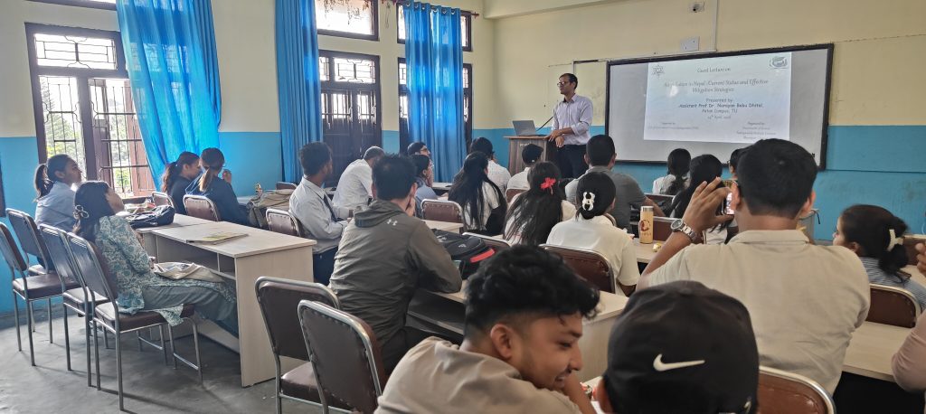 चितवन, वैशाख ११ – नेपालमा वायु प्रदूषणको अवस्था दिनप्रतिदिन जटिल बन्दै गएको र यसले जनस्वास्थ्यमा गम्भीर असर पारिरहेको तथ्यहरु सार्वजनिक भएको छ । चितवनको भरतपुरस्थित सप्तगण्डकी बहुमुखी क्याम्पसमा आयोजित ‘नेपालमा वायु प्रदूषण: वर्तमान अवस्था र प्रभावकारी न्यूनीकरणका उपायहरु’ विषयक कार्यक्रममा विज्ञहरूले सबैलाई सचेत हुन आग्रह गरेका छन । कार्यक्रममा प्रस्तुत अनुसन्धान बिवरणहरुका अनुसार नेपालमा कुनै पनि क्षेत्रका बासिन्दा विश्व स्वास्थ्य संगठन (WHO) ले तोकेको सुरक्षित वायु गुणस्तरको मापदण्डभित्र बसोबास गर्दैनन ।